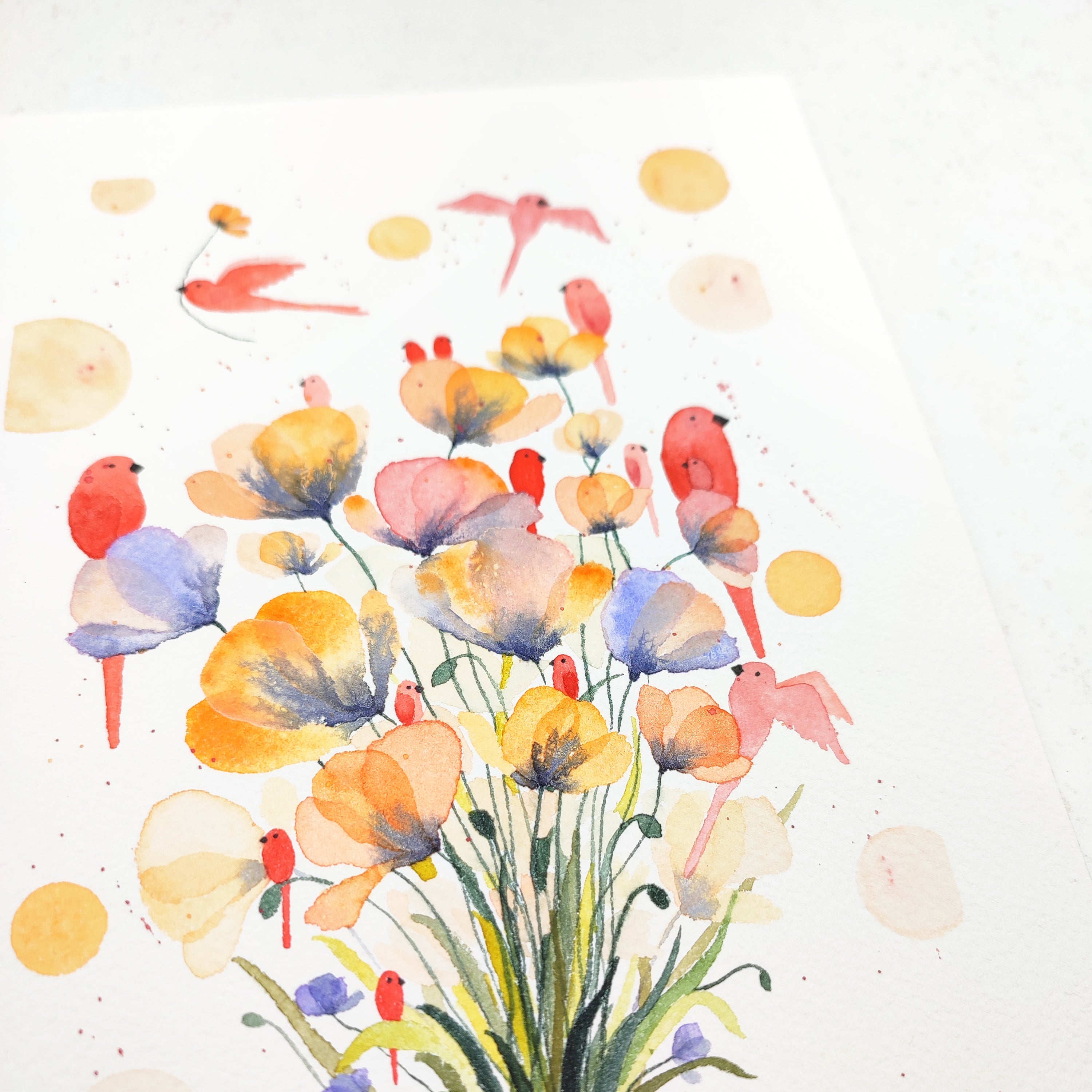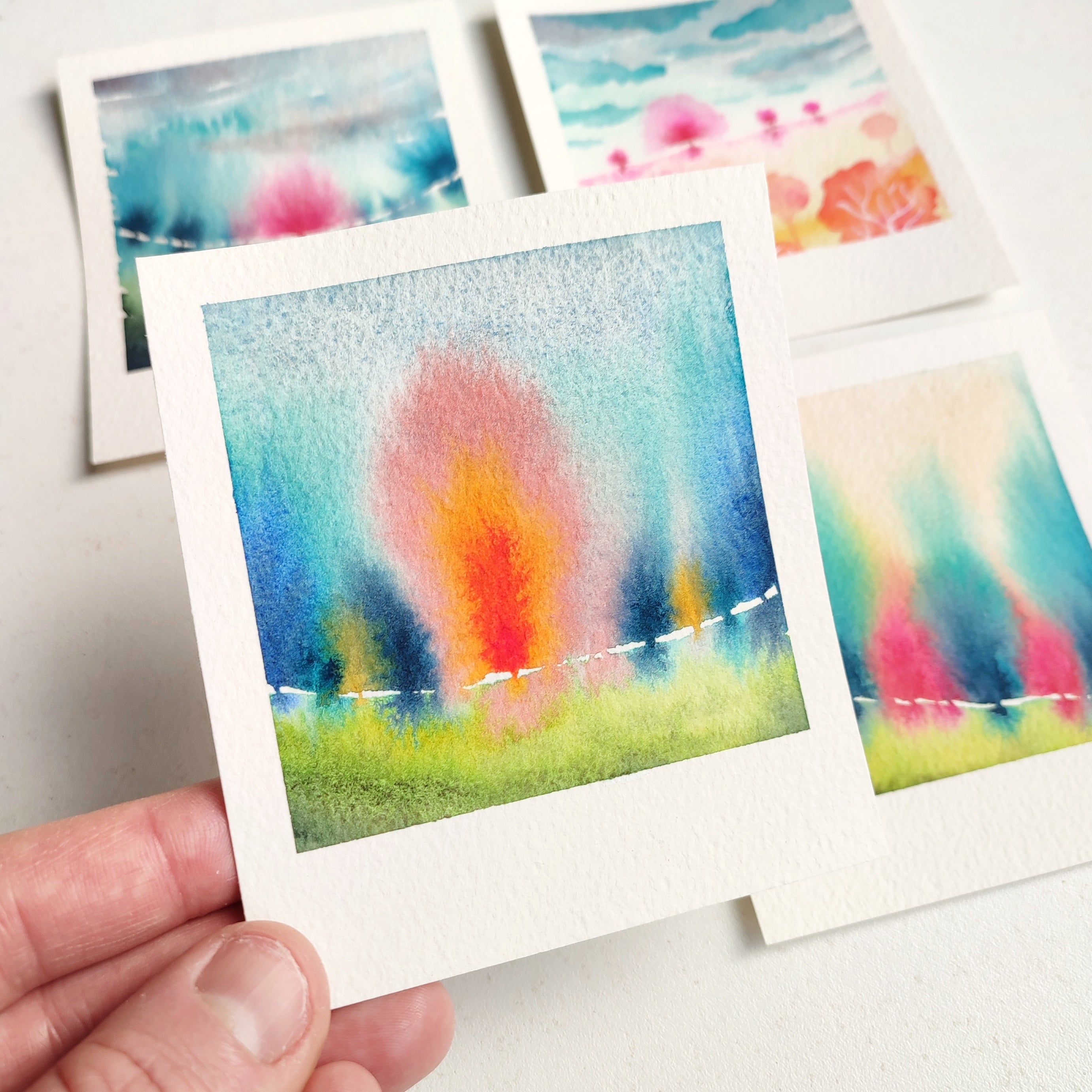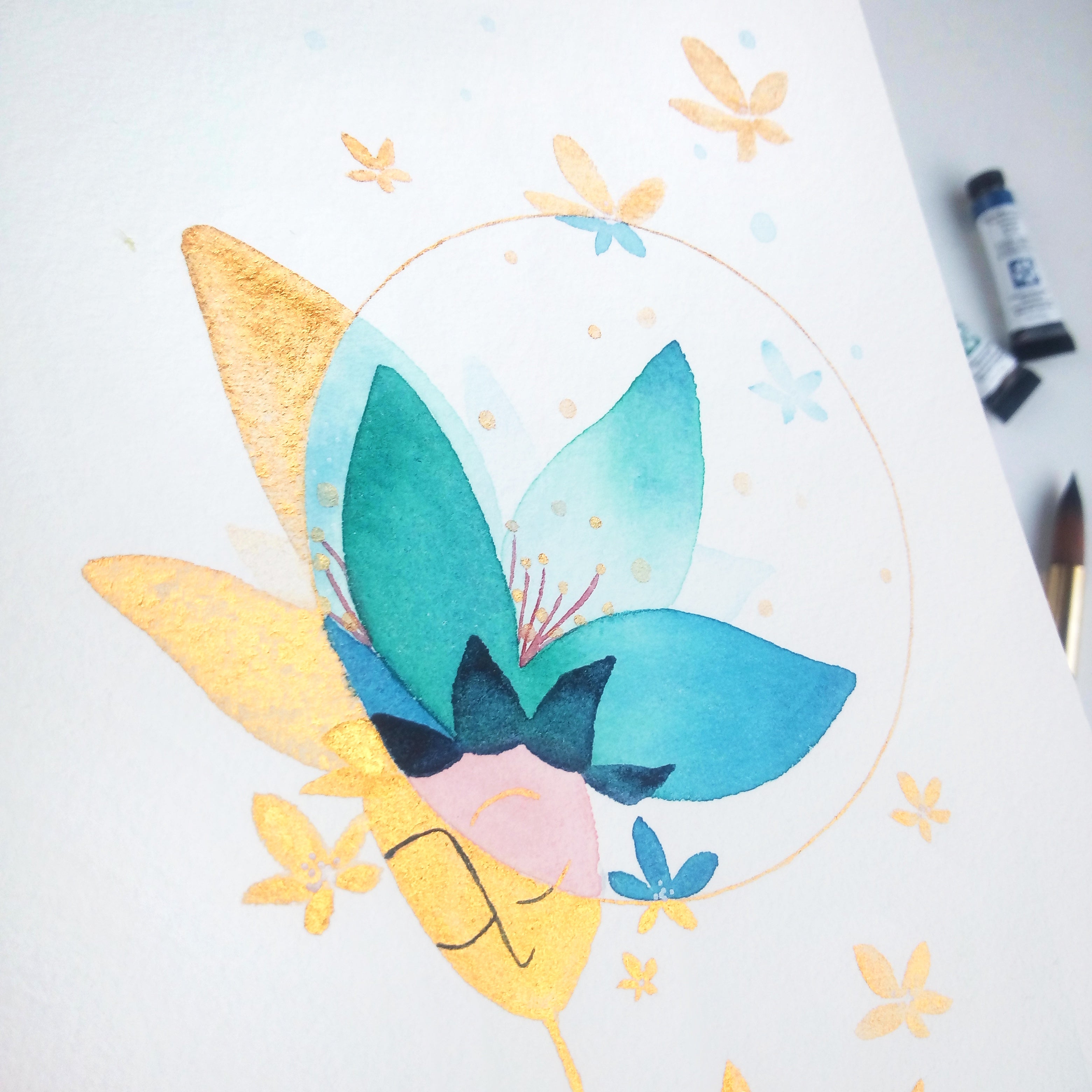 I discovered watercolor painting in 2020 during the confinement period. Painting every day, I gradually uncovered the limitless possibilities and delicate poetry that watercolor offers. It wasn’t long before I began painting small faces that became my signature series, âmes sensibles (sensitive souls).